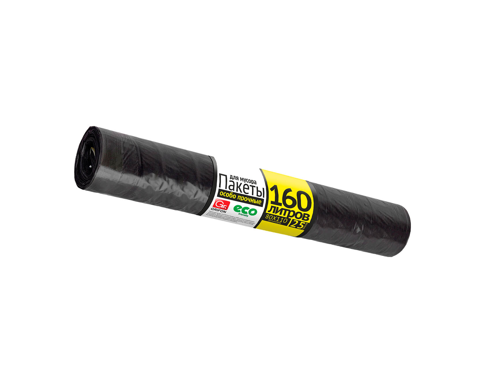 Мешки для мусора 160 л, черные, в рулоне 25 шт., ПВД, 40 мкм, 1100х800 мм, GRIFON, 101-030