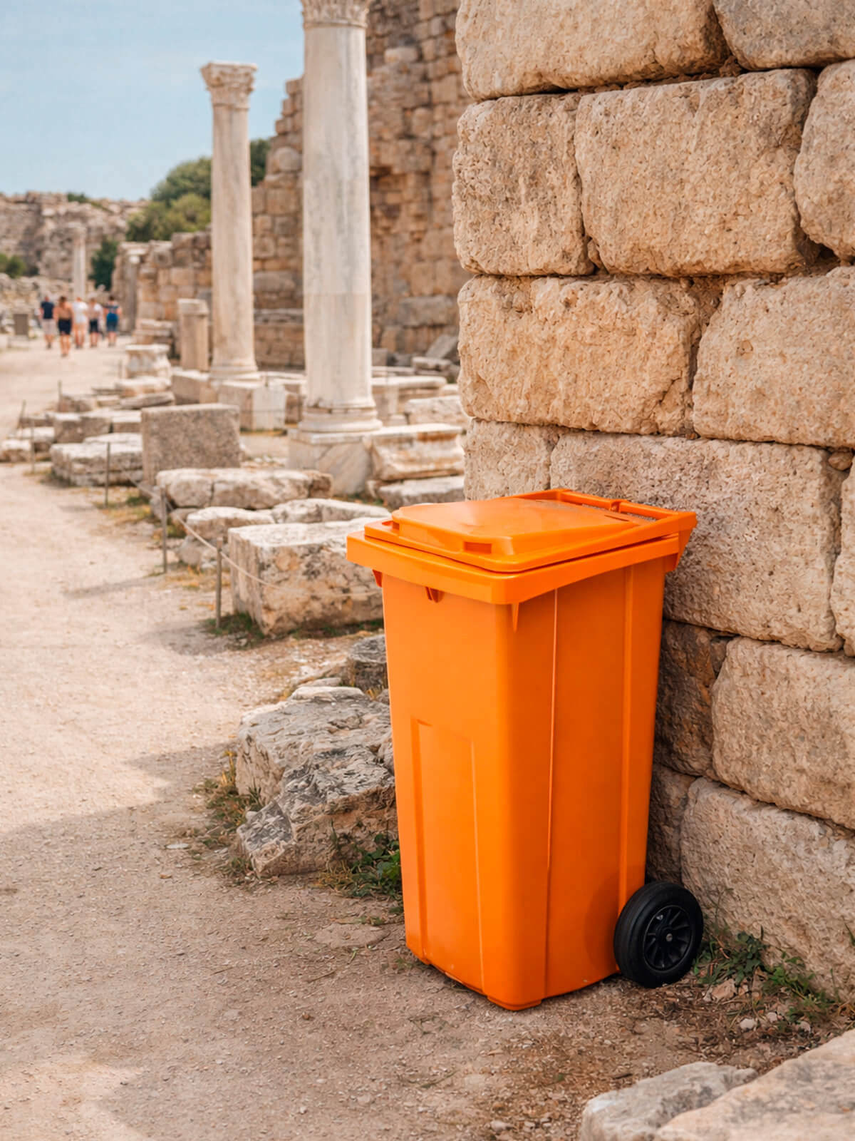 Оранжевый контейнер для мусора 120 л — это решение, созданное для объектов, где важны высокая видимость, порядок и структурированный сбор отходов. Такой мусорный контейнер уличный часто используют на производственных территориях, в коммунальных службах, на стройплощадках, парковочных зонах и в частном секторе, где требуется контрастная маркировка.