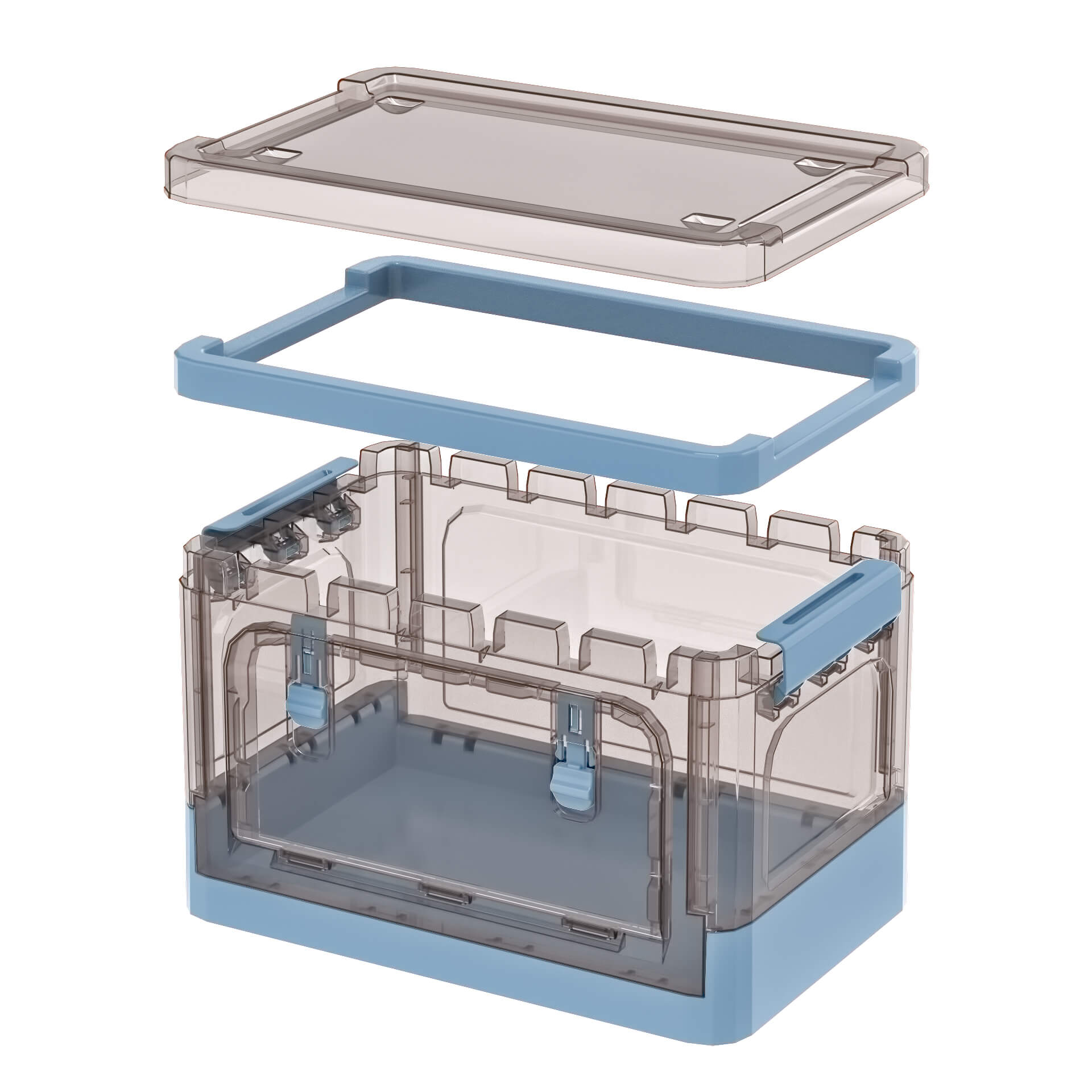Универсальный пластиковый складной ящик сочетает в себе прочность, удобство и эстетичный дизайн. Прозрачные стенки с теплым коричневым оттенком позволяют легко видеть содержимое, а глубокий синий цвет дна придает изделию стильный и аккуратный вид. Пластиковый контейнер идеально подходит для хранения одежды, игрушек, документов, бытовых принадлежностей и мелочей.