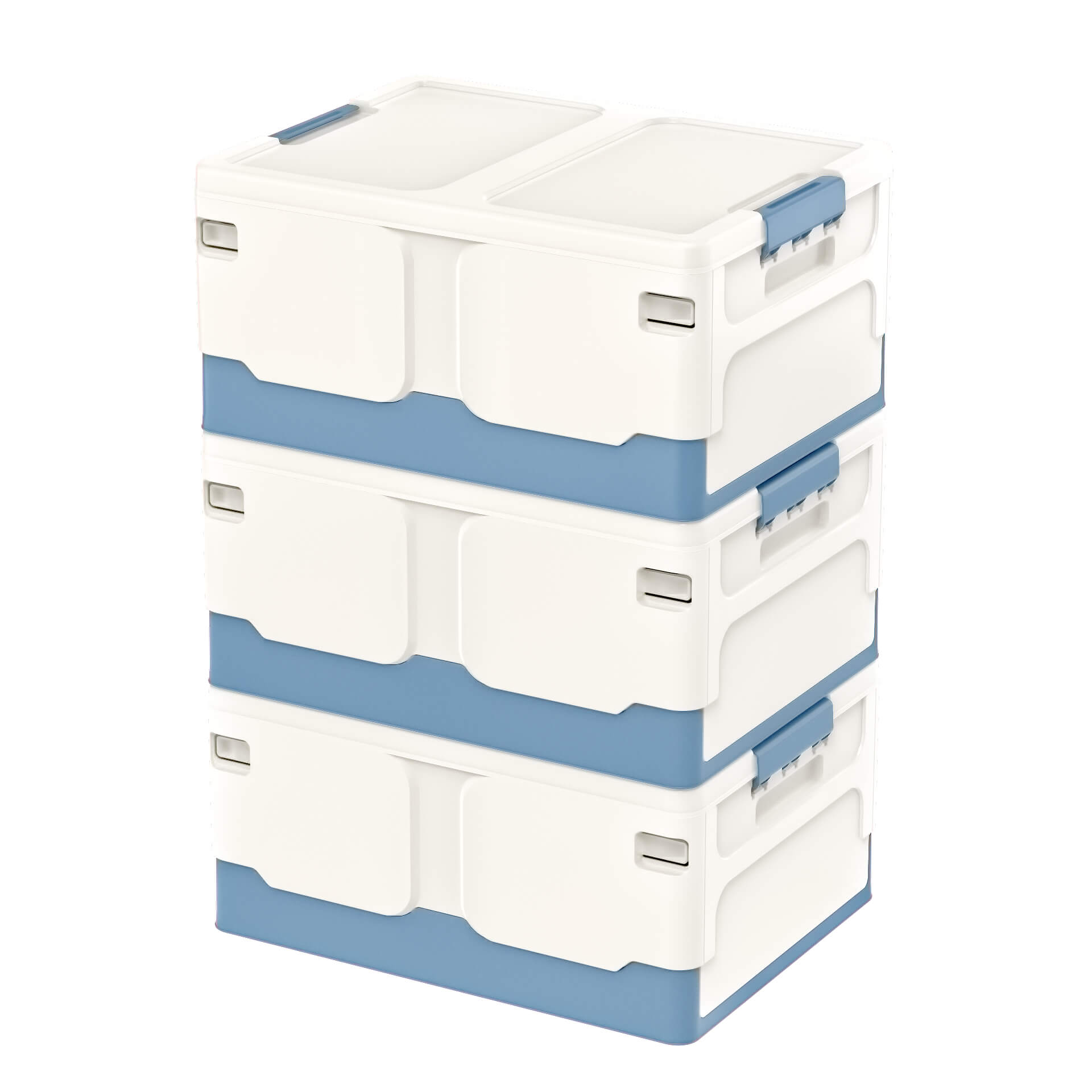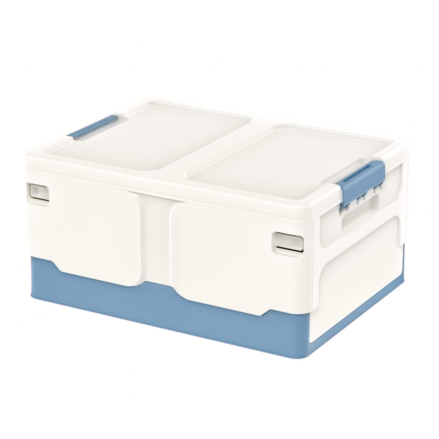 Складной пластиковый ящик 480х360х240 мм, бело-синий – надежное и стильное решение для хранения