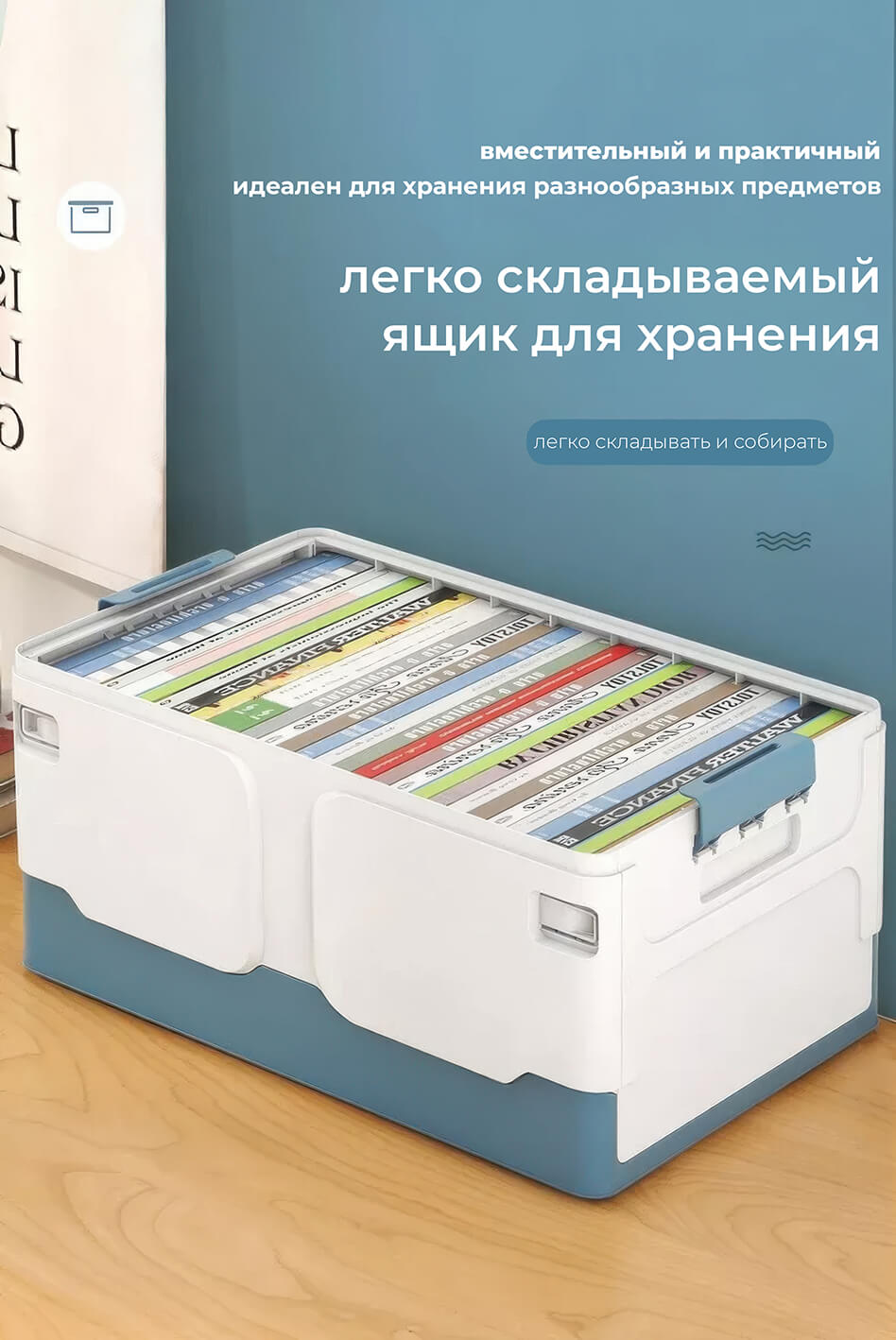 Этот пластиковый складной ящик сочетает в себе прочность, функциональность и современный дизайн. Белые стенки придают ощущение чистоты и простора, а синее дно добавляет глубины и элегантности, создавая гармоничное сочетание. Пластиковый контейнер идеально подходит для хранения одежды, игрушек, документов, мелочей и бытовых принадлежностей.