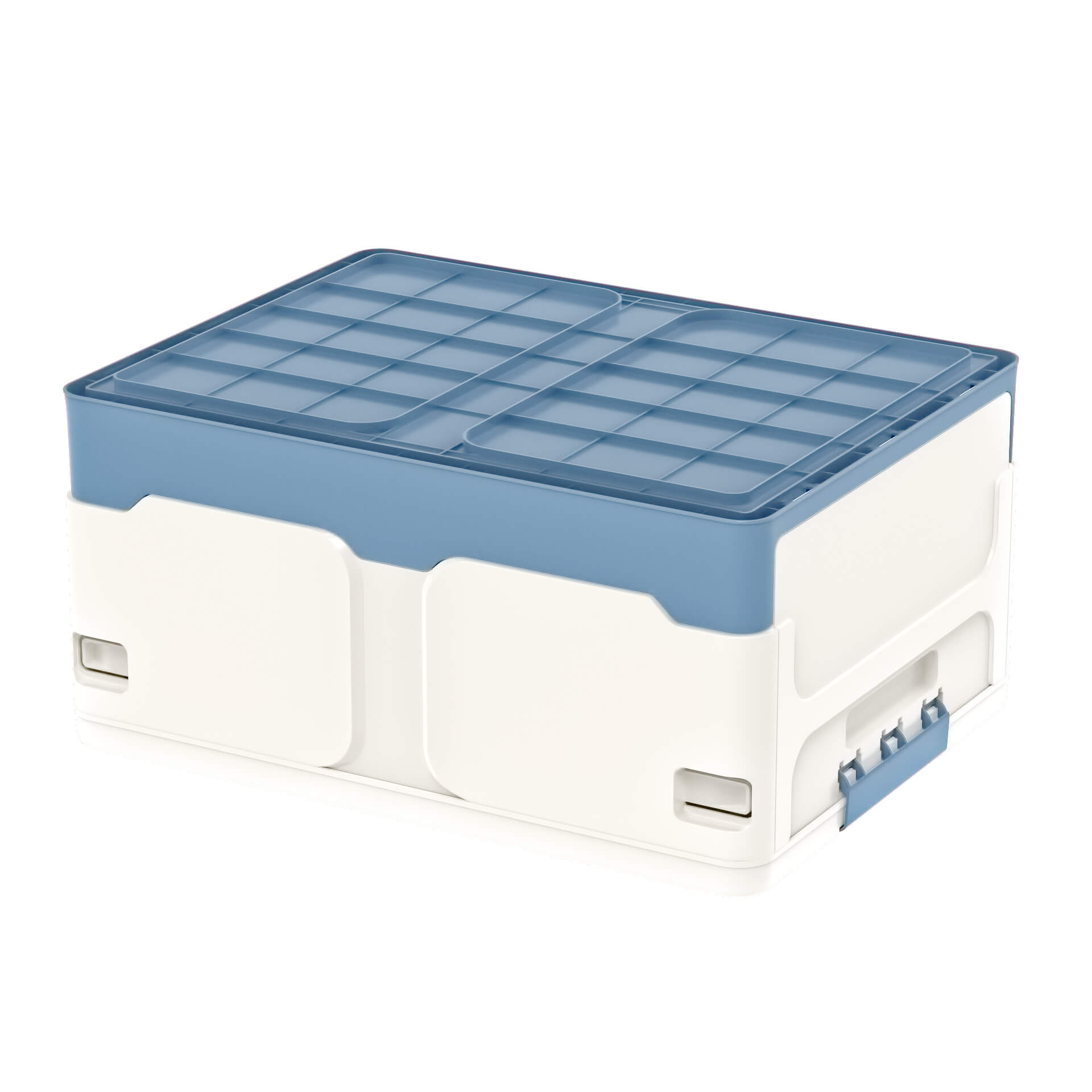 Ящик пластиковый складной белый, дно синее, 480х360х240 мм