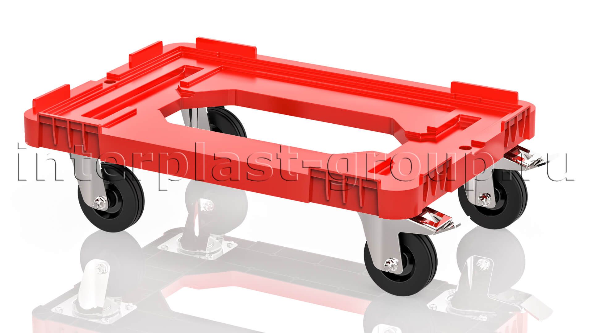 Тележка пластиковая с отверстием 2 колеса с тормозом красная в Хабаровске