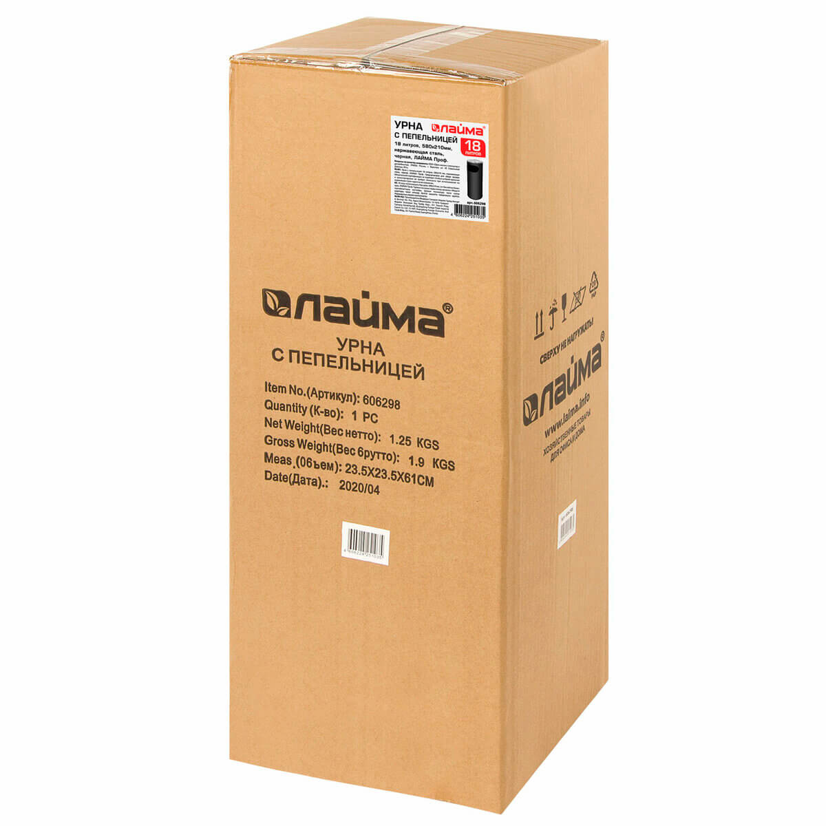 Урна с пепельницей 18 литров, нержавеющая сталь, черная, LAIMA PROFESSIONAL