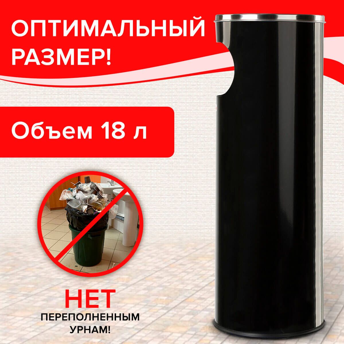 Урна с пепельницей 18 литров, нержавеющая сталь, черная, LAIMA PROFESSIONAL в Хабаровске
