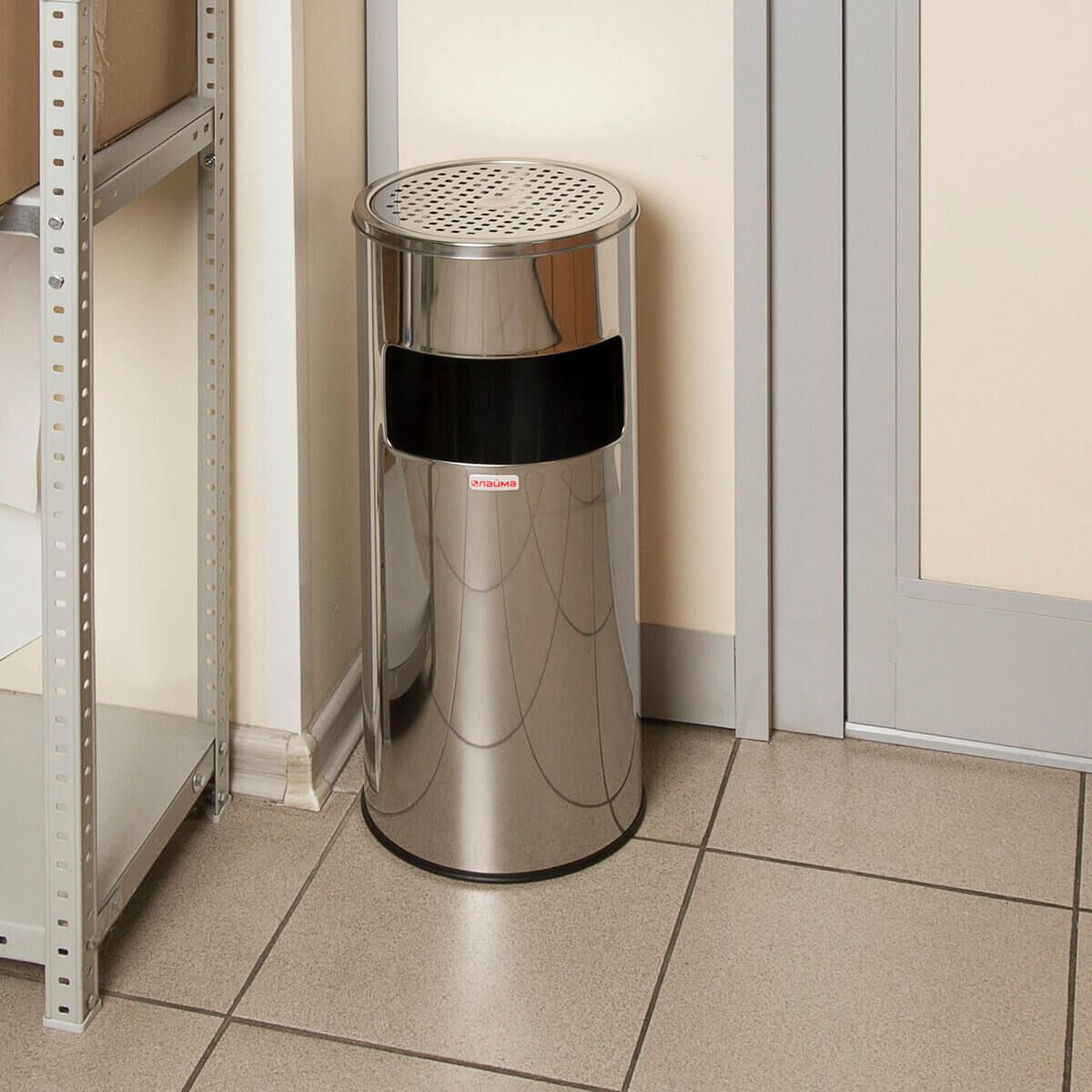 Урна с пепельницей 27 л, нержавеющая сталь, зеркальная, LAIMA PROFESSIONAL