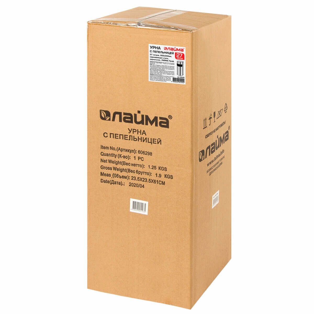 Урна с пепельницей 27 л, нержавеющая сталь, зеркальная, LAIMA PROFESSIONAL в Хабаровске
